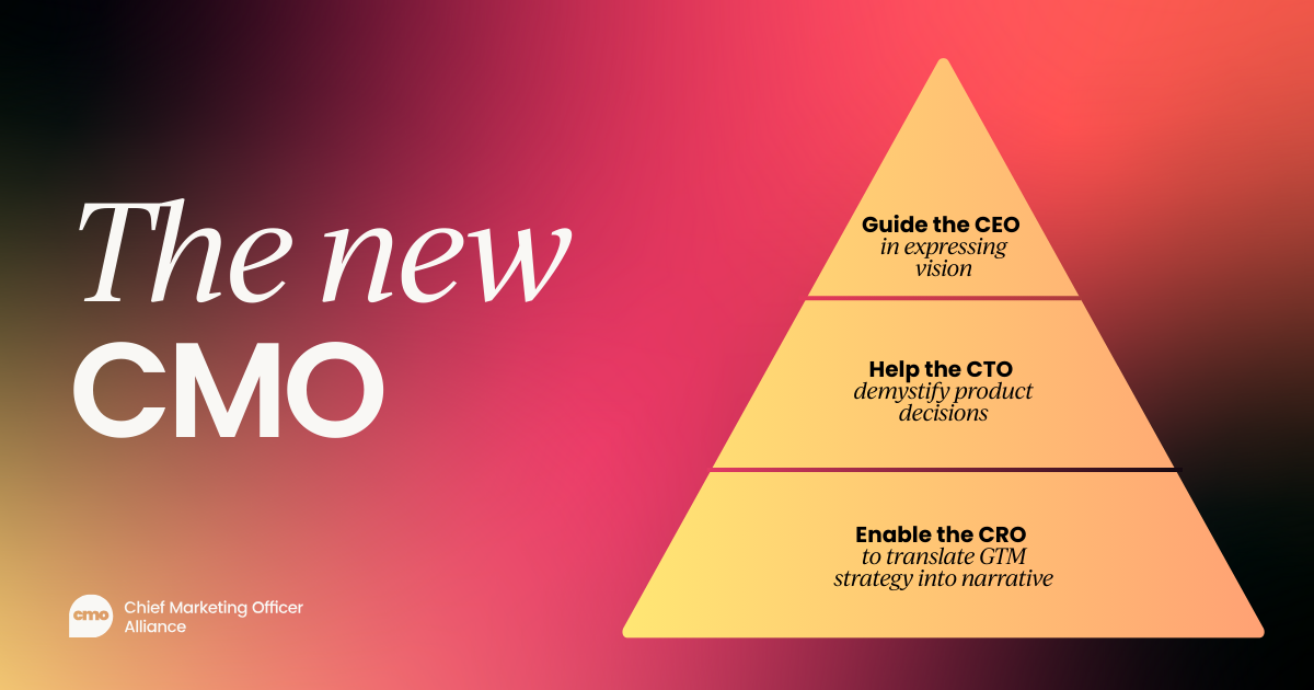 CMOs will increasingly operate as executive coaches, guiding CEOs in expressing vision, helping CTOs demystify product decisions, enabling CROs to translate GTM strategy into narrative, and distributing influence across the leadership team instead of concentrating it in a single “brand voice.”