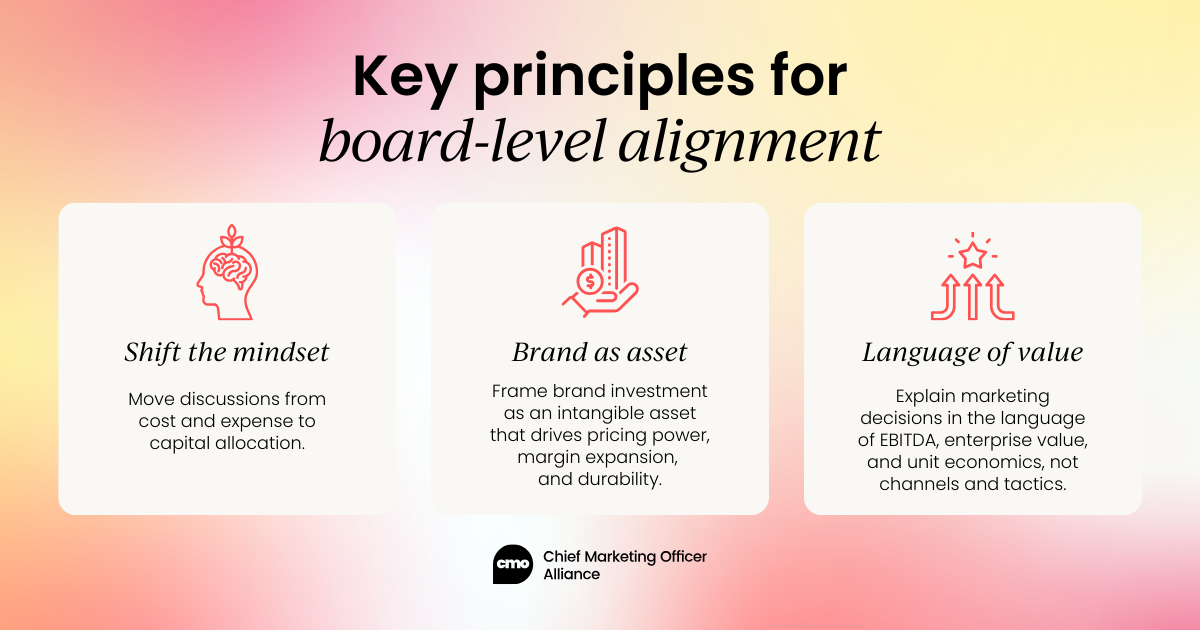 - Focus on the balance sheet: Frame brand investment as an intangible asset that drives pricing power, margin expansion, and durability.