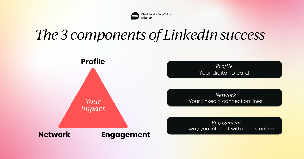 A strong personal brand on LinkedIn is built on a combination of three key components: your profile, your network, and your engagement.