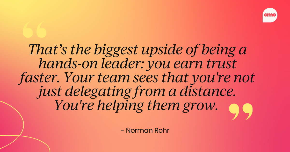 That’s the biggest upside of being a hands-on leader: you earn trust faster (and, of course, see through the BS quicker).