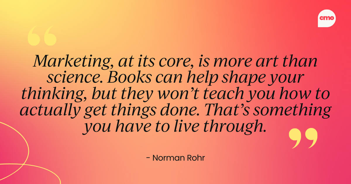Because marketing, at its core, is more art than science. Books can help shape your thinking, but they won’t teach you how to actually get things done. That’s something you have to live through.