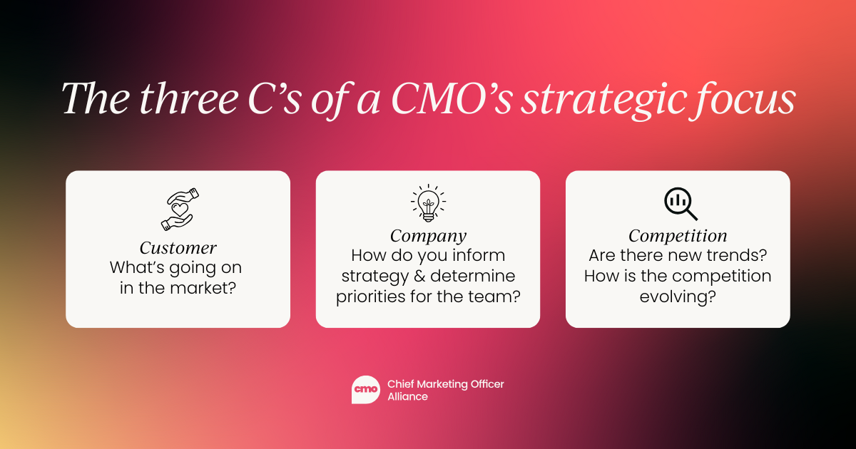 In my opinion, the CMO's role is to bring external insights into the organization, informing strategic decisions with a deep understanding of market trends, customer behaviors, and competitive dynamics.