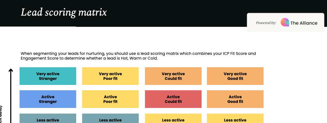 Our lead scoring matrix is a four-part framework that helps marketing and sales teams evaluate the quality of leads and prioritize which ones deserve attention first.