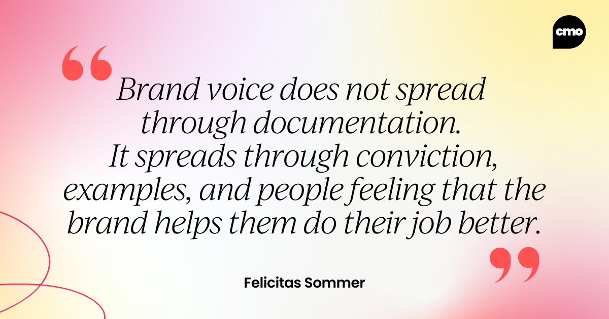 If you walk in a meeting with a brand guidelines document and expect compliance, you will fail. Brand voice does not spread through documentation. It spreads through conviction, examples and people feeling that the brand helps them do their job better.