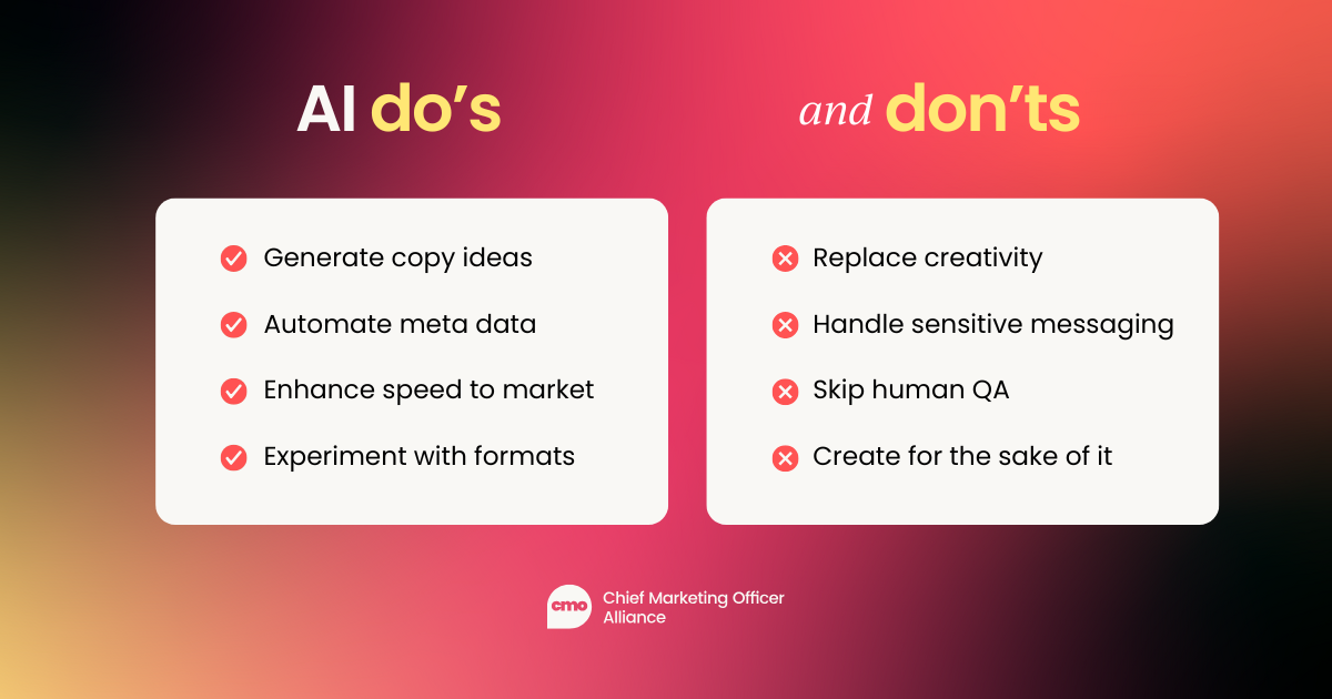 Let it help with frameworks, research, or variations on messaging, but don’t let it do the whole job.