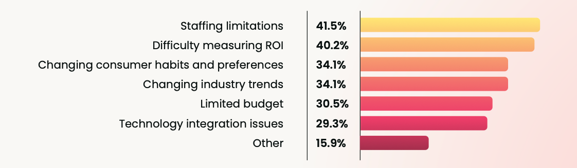 According to our report, nearly half of marketers cite difficulty measuring ROI as one of their biggest barriers. That sits right next to staffing limitations at 41.5%.