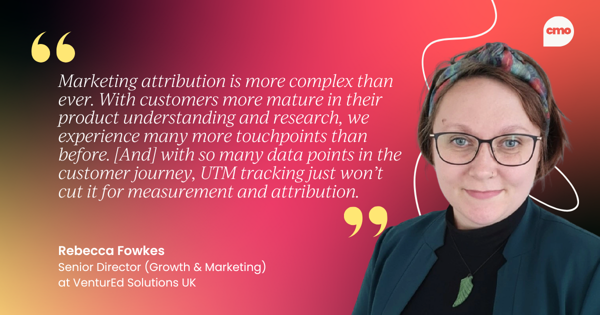 Rebecca Fowkes, Marketing Director at VenturEd Solutions UK, describes the challenge: "Marketing attribution is getting more complex than ever. With customers more mature in their product understanding and research, we experience many more touchpoints than before. With so many data points in the customer journey, UTM tracking just won't cut it for measurement and attribution."